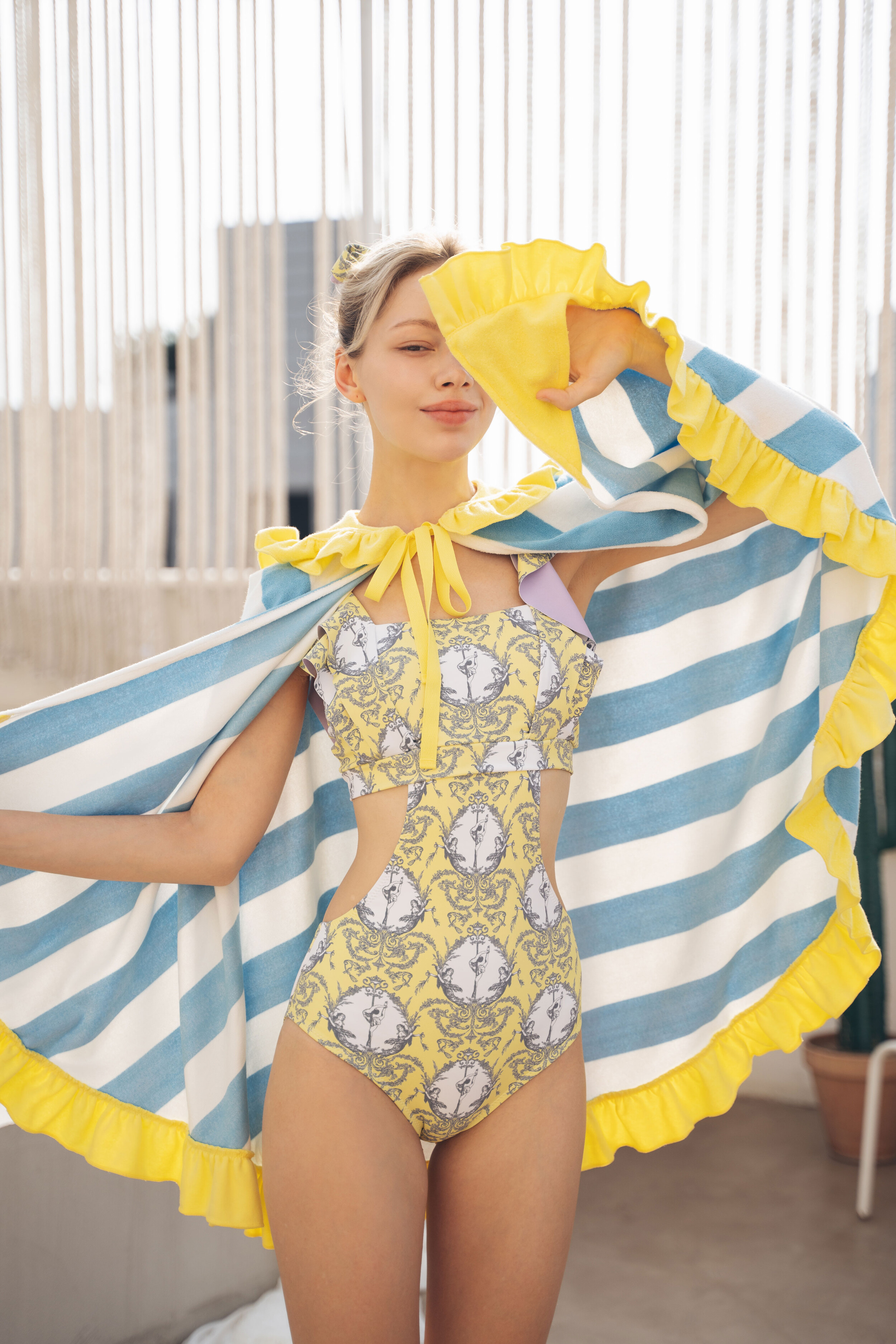 라끌레만의 무드로 러블리하고 페미닌하게 풀어낸 비치 판초입니다.